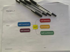 She then moved us into the theme of Understanding Identity and Emotional Intelligence. Eve spoke about Kitwood’s Flower, a well-known model in dementia care that highlights the psychological needs of people living with the condition. But she also introduced us to another model, this one focused on the components that make up our sense of self. It asked us to think about what shapes who we are: our self-image, self-confidence, self-identity, self-construct, and self-esteem.
